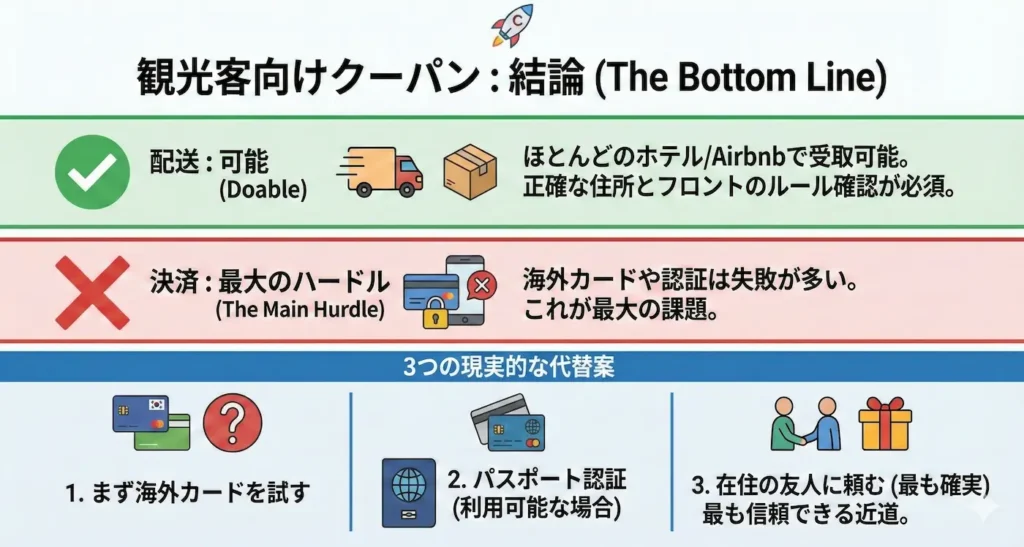 結論:クーパンは安く買えるチャンスが多い。でも旅行者は「決済」が最大の壁