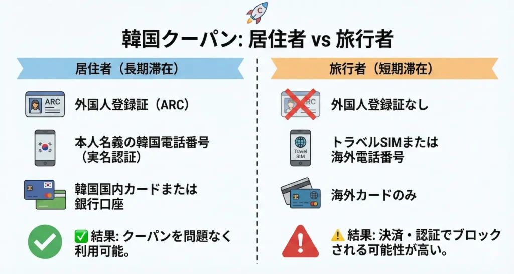 - 短期滞在だと韓国の金融・本人確認の土台が不足しやすい